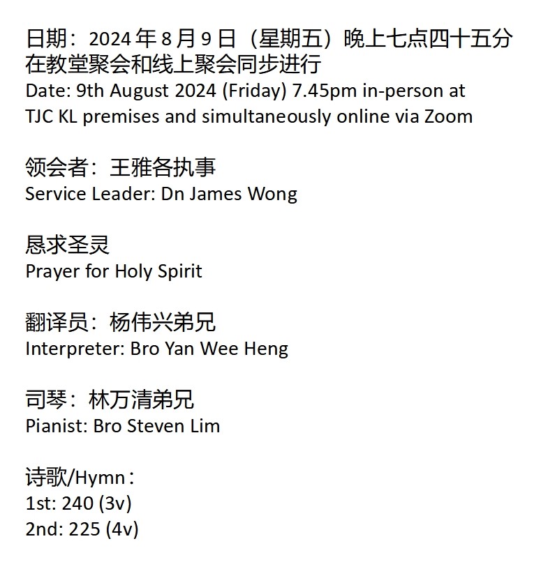常年灵修暨佈道会~ANNUAL SPIRITUAL NURTURE cum EVANGELICAL MEETING (2025/05/31-06/02) - May 05, 2025 Read more